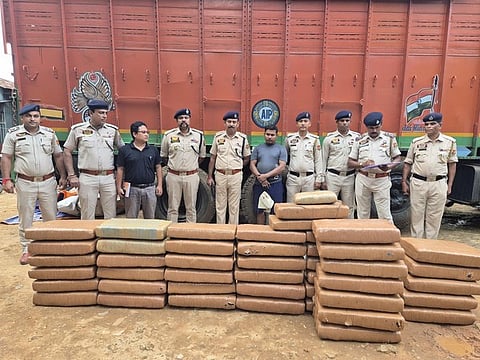 SP West Tripura said that 45 packets of cannabis, weighing approximately 355 kilogrammes, were seized. The haul is valued at around Rs 7 million. The truck driver, identified as Mithun Karmakar (35) from Ramnagar, was immediately taken into custody.