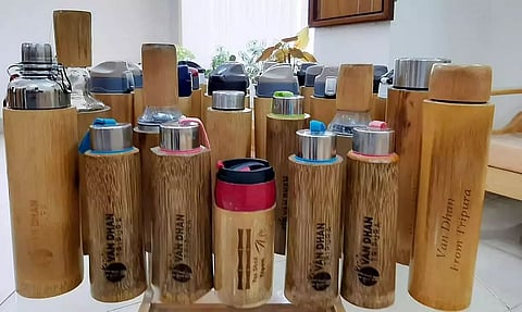 Adding value to this natural resource and providing livelihood to these local artisans, Tripura Rehabilitation Plantation Corporation (TRPC) along with Bamboo Crafts Development Institute (BCDI) and Centre for Forest Livelihood and Extension (CFLE) has introduced new bamboo bottles in the state. The bottles are being promoted under the PMVDVK and NBM schemes. On June 26th, Chief Minister Biplab Kumar Deb introduced the bottles in social media through a tweet.