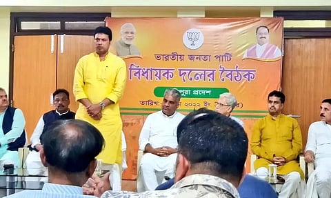 Taking to his Twitter handle, former Tripura CM Biplab Deb wrote "Congratulations and best wishes to @DrManikSaha2 ji on being elected as the legislature party leader. I believe under PM Shri @narendramodi Ji's vision and leadership Tripura will prosper."