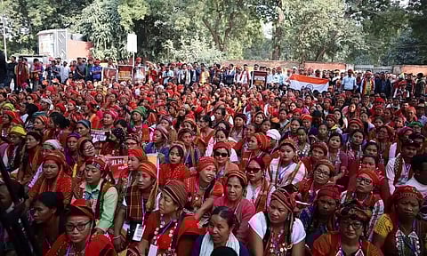 NEW DELHI/AGARTALA: Hundreds of tribals from Tripura, including a large number of women, on Monday began their two-day sit-in demonstrations at Jantar Mantar in the national capital to intensify their demand for greater autonomy for the tribals with Constitutional recognition.