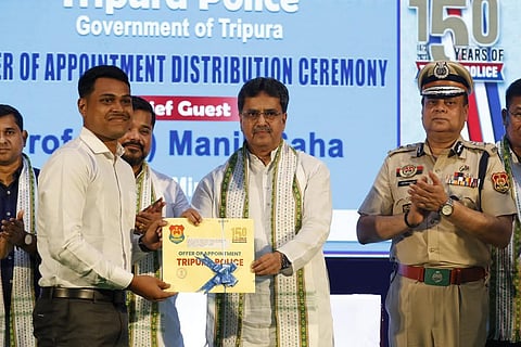 Agartala: In a significant step towards bolstering the state’s police force, Tripura Chief Minister and Home Minister Manik Saha handed appointment letters for the post of police constables to 979 candidates in a program held at Shatabarshiki Bhavan in Agartala.