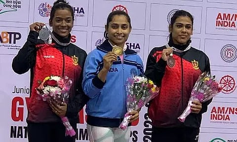 TRIPURA: Dipa Karmakar, a highly skilled gymnast hailing from Tripura, staged an impressive return by clinching three medals at the Senior Artistic Gymnastics National Championship in Bhubaneswar. The championship took place at the Gymnastics Centre located within Kalinga Stadium where Karmakar exhibited her exceptional prowess on day three of the tournament.