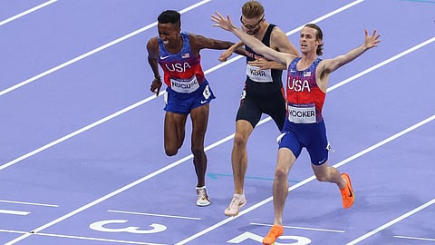 Paris: American Cole Hocker produced a barnstorming finish to clinch gold in the men’s 1,500m at the Paris Olympics. Hocker passed defending champion Jakob Ingebrigsten of Norway and Britain’s reigning world champion Josh Kerr in the final stretch to win in an Olympic record time of 3 minutes, 27.65 seconds. Hocker’s time beat the previous Olympic record of 3:28.32 set by Jakob Ingebrigsten at the Tokyo Games three years ago. Kerr took silver in 3:27.79 while American Yared Nuguse also finished strongly to take bronze in 3:27.80. IANS