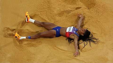 Davis-Woodhall had victory locked up before her final jump, choking back tears before her final sprint down the runway. She stood up briefly after landing, then fell back into the sand with a wide smile to the delight of the Stade de France crowd. Agencies