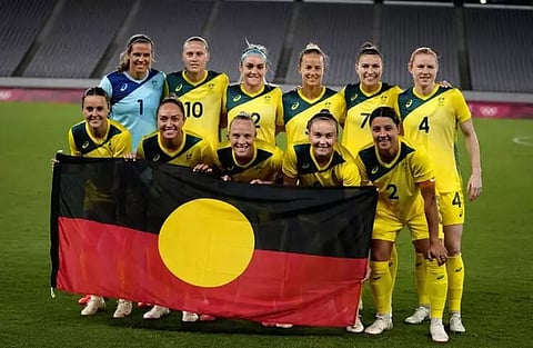TOKYO: The Australian women's football team posed with an Aboriginal flag and linked arms while standing on the halfway line to make their own special statement against racism ahead of their opening group match in the Tokyo Olympics against New Zealand.