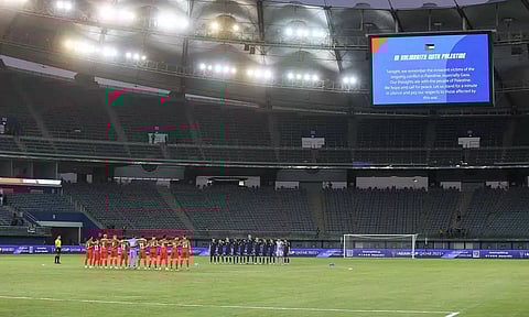 “Free Gaza” flags were also present in the stands as support to Palestine in their ongoing war against Israel. IANS