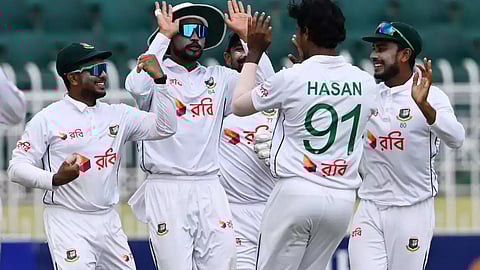 Rawalpindi: Young fast-bowlers Hasan Mahmud and Nahid Rana took nine wickets collectively to put Bangladesh on the verge of a historic series sweep over Pakistan on day four of the second Test at the Rawalpindi Cricket Stadium here on Monday.