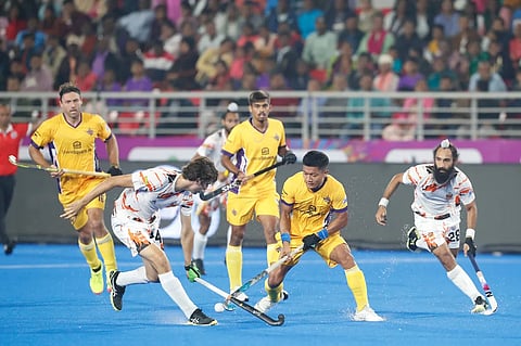 Rourkela: Day two at the Hockey India League (HIL) 2024-25 season witnessed thrilling action unfold at the iconic Birsa Munda Hockey Stadium in Rourkela with Shrachi Rarh Bengal Tigers and Hyderabad Toofans match going down to the wire. It was eventually Shrachi Rarh Bengal Tigers who won 3-2, with goals by Jugraj Singh (9'), Sukhjeet Singh (20') and Affan Yousuf (36') while Timothy Daniel (41') and Arthur de Sloover (59') scored for Hyderabad Toofans. IANS
