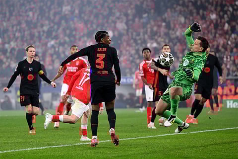 Lisbon: Raphinha scored the only goal as FC Barcelona played for 70 minutes with a player less to win 1-0 at Benfica in the first leg of its Champions League last-16 tie after being under pressure for virtually the entire 90 minutes.