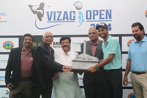 Visakhapatnam: Chandigarh golfer Angad Cheema earned a just reward for his consistency this season after he kept his nerve to prevail in a pulsating playoff against Aman Raj of Patna, ending an 11-year wait for his second PGTI title in the Vizag Open 2024 played at the East Point Golf Club (EPGC) on Saturday.