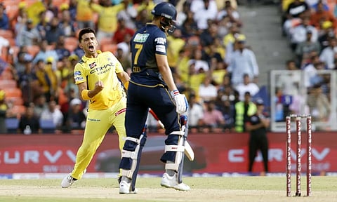 Ahmedabad: Afghan spinner Noor Ahmad and India's Anshul Khamboj took three wickets each, while Ravindra Jadeja claimed two scalps, to trigger a batting collapse as Chennai Super Kings bundled out hosts Gujarat Titans for 147 in 18.3 overs for a big win in Match 67 of Indian Premier League (IPL) 2025 here on Sunday.