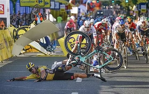 The first stage of Tour de Pologne on Wednesday in Katowice, Poland was disrupted by a high-speed crash just before the finish line. Jakobsen had hit into the barriers after he clashed elbow-to-elbow with Belgium's Groenewegen. The barriers flew across the road which contributed to the crash of several other cyclists.IANSĀ