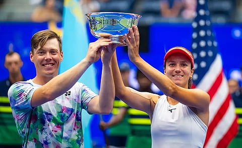 NEW YORK: Anna Danilina of Kazakhstan and Harri Heliovaara, her partner from Finland, finished a fairytale run to their first Grand Slam title by beating the No.1 seeds Jessica Pegula and Austin Krajicek to claim the mixed doubles title at the US Open here on Saturday. Anna Danilina and Harri Heliovaara won the final 6-3, 6-4 inside Arthur Ashe Stadium to claim the title in their maiden Grand Slam competition as a team.