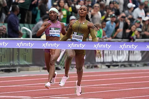 Saint Lucia's Julien Alfred finished a tenth of a second slower with Briton Dina Asher-Smith third in 10.98s. Richardson's Jamaican rival Elaine Thompson-Herah, who completed a second successive Olympic sprint double in Tokyo, finished last in 11.30.