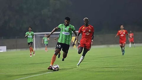 Gokulam didn’t have to wait long to extend their lead as their second goal was gifted by TRAU in the 16th minute. TRAU goalkeeper Mithun Samanta failed to handle an innocuous back pass from Clinton and was caught in possession. Sanchez was on the prowl and he punished the TRAU defence for their lackadaisical attitude. The Gokulam Kerala forward seized the ball and buried it to score his second of the match.