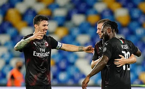 AC Milan played the last few minutes with 10 men after Alexis Saelemaekers was sent off after being booked twice in three minutes. Agencies