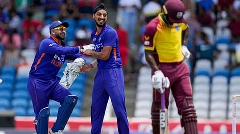 LAUDERHILL: Young India pacers, Avesh Khan and Arshdeep Singh, bowled with discipline as the visitors thrashed West Indies by 59 runs to take an unassailable 3-1 lead in the five-match T20I series here on Sunday (IST). On a day when wicketkeeper-batter Rishabh Pant (44) and Sanju Samson (30) along with skipper Rohit Sharma (33) gave the visitors an imposing 191 to defend, the lanky Arshdeep grabbed three wickets, while Avesh took two as the West Indies innings folded up for just 132 in the final over of their innings to help India clinch the series.