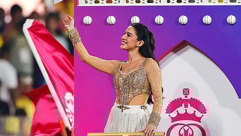 Guwahati: Bollywood actress Sara Ali Khan stole the spotlight in Guwahati with an electrifying performance before the IPL match between Rajasthan Royals and Chennai Super Kings at the ACA Stadium. This performance was part of a special initiative by the Board of Control for Cricket in India (BCCI) to commemorate IPL’s 18th season, adding an extra layer of excitement and glamour to the thrilling cricketing action in 13 venues. The event, which lasted 25 minutes, held before the game. Sara, arrived in the stadium in a chariot and waved to the crowed which welcomed her with applause and cheers.Sara danced to her popular Bollywood tracks, including the chartbuster “Tere waste falak se...,” Later many others including “Hat ja samne se....” The performance had the entire stadium buzzing as the audience cheered and danced along in the galleries.