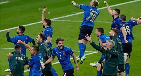 LONDON: Italy qualified for the final of the European Championships after beating Spain in a dramatic penalty shootout at Wembley after 120 minutes of football had ended 1-1.