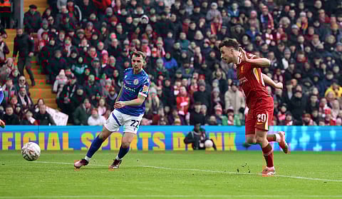 LONDON: Liverpool eased past League Two (fourth-tier) Accrington Stanley as Diogo Jota and Trent Alexander-Arnold’s first-half goals and strikes from Jayden Danns and Federico Chiesa after the break secured a 4-0 win in Saturday’s FA Cup third-round clash.