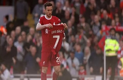 Jota finished off a quick counter-attack to break the deadlock in the 31st minute and celebrated by holding up the shirt of team mate Luis Diaz, who missed the game following the kidnapping of his parents in his native Colombia.