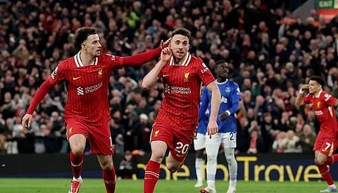 London: Diogo Jota scored a 57th-minute goal to see Liverpool win the Merseyside derby 1-0 against Everton and retain a 12-point lead in the Premier League.