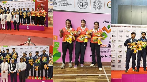 Meanwhile Chitkara University completed a clean sweep of table tennis gold medals here on Thursday. While the men’s paddlers delivered another dominating performance to complete a hat-trick of gold medals at the Tarun Ram Phookan Indoor Stadium, the women’s team clinched their first-ever title for Chitkara University.