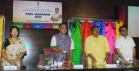 GUWAHATI: Chief Minister Himanta Biswa Sarma today unveiled the logo, mascot, jersey and theme songs of the forthcoming Khel Maharan. The event was held at the CM Conference Hall which was also attended by the Sports and Youth Welfare Minister Nandita Gorlosa.