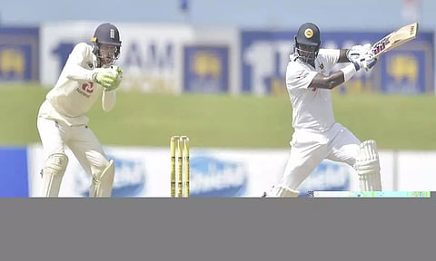 Fast bowler James Anderson dismissed opener Kusal Perera and Oshada Fernando in the fourth over of the day. However, Matthews anchored strong partnerships after that to help Sri Lanka edge ahead at the end of the day. Matthews first put up a 69-run stand with LahiruThirmanne and then a 117-run partnership with captain Dinesh Chandimal for the fifth wicket.