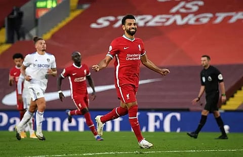 Juergen Klopp's side grabbed a fourth minute lead after referee Michael Oliver harshly ruled that Leeds' debutant German defender Robin Koch had handled a Salah shot which deflected off his thigh on to his outstretched arm.