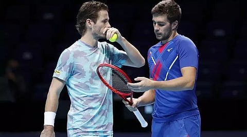 LONDON: Nikola Mektic and Wesley Koolhof won their opening match in the doubles event of the 2020 ATP Finals on Sunday against Kevin Krawietz and Andreas Mies 6-7 (3), 7-6 (4), 10-7 at the O2 Arena. In the first match of men's singles, Dominic Thiem and Stefanos Tsitsipas were at level by claiming on set each when report last came in. Thiem took the firts set in tie-break 7-5 while Tsitsipas came back strongly in the second with 6-4. However Thiem was leading in the final set by 3-1 games.