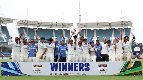 Chennai: India women’s team defeated South Africa by 10 wickets in the one-off Test at the M.A. Chidambaram Stadium on Monday. Chasing the target of 37 runs, Indian openers Shafali Verma (24 not out) and Shubha Satheesh (13 not out) took the hosts to a comfortable victory.