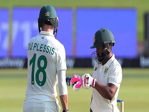 CENTURION: Faf du Plessis and Temba Bavuma built on Dean Elgar and Aiden Markram's opening partnership of 141 to help South Africa get within 79 runs of Sri Lanka's first innings total of 396 on the second day of the first Test on Sunday.
