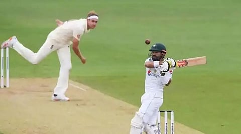 LONDON: Pakistan middle-order batsman Mohammad Rizwan hit a defiant half-century on a difficult batting pitch to guide his side past the 200-mark in their first innings and frustrate England in the second Test on Friday.