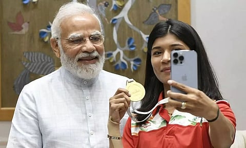 Nikhat, with bronze-medal winner boxers Manisha Moun and Parveen Hooda, met PM Modi on June 1 after their stellar performances in the World Boxing Championships.