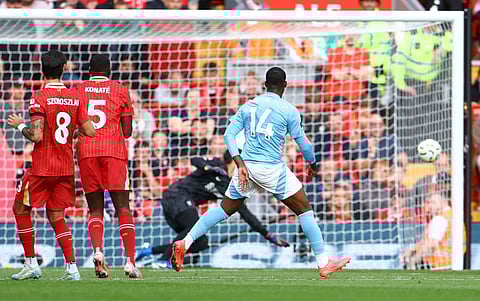 Two minutes later Mohamed Salah crossed beautifully with the outside of his left boot for Dominik Szoboszlai to head just wide as Liverpool increased the pressure.