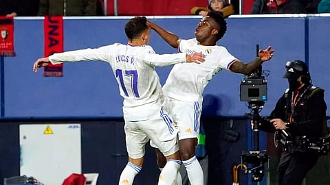 MADRID: Real Madrid continued their march towards a 35th LaLiga title as goals by David Alaba, Marco Asensio and Lucas Vazquez earned them a 3-1 win at Osasuna on Wednesday with Karim Benzema missing two penalties. The victory means Real have 78 points and hold a 17-point lead at the top over closest rivals Atletico Madrid, who were held to a goalless draw by Granada earlier on Wednesday.