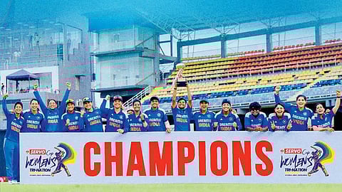 Colombo: Vice-captain Smriti Mandhana hit a sublime 116 off 101 balls while Sneh Rana and Amanjot Kaur shined with stellar bowling efforts as a dominant India clinched the women’s ODI tri-series with an emphatic 97-run win over Sri Lanka at the R Premadasa International Cricket Stadium on Sunday.