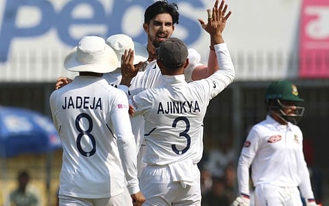 Indore: The Indian pace trio comprising Ishant Sharma, Umesh Yadav, and Mohammed Shami ran through Bangladesh batting line-up as Virat Kohli and boys register a comfortable win by an innings and 130-run win over the visitors in the first Test of the two-match series at the Holkar Stadium, here on Saturday.