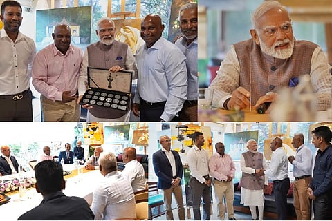 In an interaction with the members of the World Cup winning squad including Sanath Jayasuriya, Chaminda Vaas, Aravinda de Silva, Marvan Atapattu, Ravindra Pushpakumara, Upul Chandana, Kumar Dharmasena and Romesh Kaluwitharana, PM Modi discussed cricket and the strong relationship between India and Sri Lanka during his visit to the island nation.