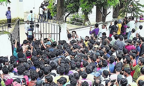 HYDERABAD: At least 20 people fell unconscious and several people were injured after a pandemonium broke out at the Secunderabad Gymkhana Grounds on Thursday.