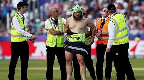 Chester-le-Street: A delay was caused during the World Cup match between England and New Zealand when a streaker wearing just a green hat ran onto the field.