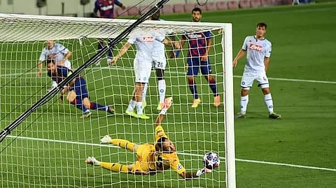 Messi in the 23rd minute got the ball in the right hand corner of Napoli's penalty area, wriggled past three defenders and then lost his balance for a moment. He however picked himself up and managed to curl the ball into the far corner. He doubled their lead seven minutes later but the goal was disallowed by VAR.