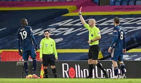 LONDON: Ten-man Arsenal hung on for a 0-0 draw at Leeds United in the Premier League after their winger Nicolas Pepe was sent off in the 51st minute on Sunday. VAR officials spotted that Pepe had headbutted Ezgjan Alioski and referee Anthony Taylor took a quick look at the monitor before brandishing the red card.