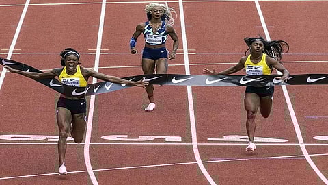 EUGENE: Two-time Olympic 100m champion Elaine Thompson-Herah of Jamaica ran a stupendous 100m race, clocking 10.54 seconds at the Wanda Diamond League meeting in Eugene, Oregon. That was the second fastest time ever in the history of 100m racing -- just short of the 10.49 clocked by American Florence Griffith-Joyner in 1988.