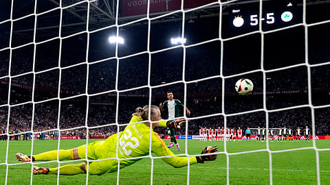 Ajax, who won 1-0 at Panathinaikos last week, conceded in the 89th minute in Amsterdam, leading to the shootout that broke the previous record of 32 attempts at the European U-21 Championship semi-final in 2007 where Netherlands beat England 13-12.