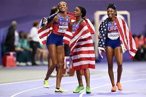 PARIS: The United States won the gold medal in the Olympic women’s 4x100 metres relay on Friday, their 12th title in the event, after Britain botched their final exchange.