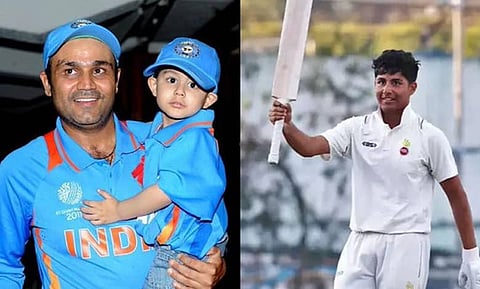 New Delhi: Former India opener Virender Sehwag on Friday lauded his son Aaryavir Sehwag after the youngster hammered 297 while playing for Delhi against Meghalaya in the U-19 men’s Cooch Behar Trophy Elite Group A match at the MCA Ground in Polo, Shillong.