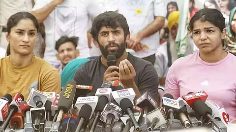 “We would like to see what questions are being asked. He has asked for Narco Test of Vinesh and myself. I am saying why only two of us but also all those girls who have filed complaints should also undergo Narco Test,” Bajrang, sitting alongside Sakshi Malik and Vinesh Phogat at protest site in Jantar Mantar, said.
