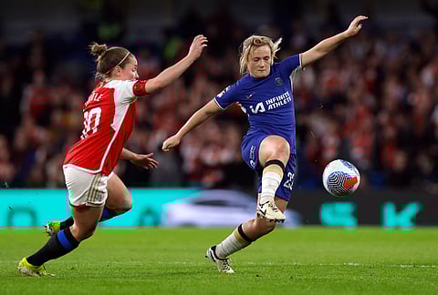 LONDON: Leader Chelsea scored first-half goals to beat third-placed Arsenal 3-1 with a Lauren James strike and Sjoeke Nusken double on Friday as it moved three points clear atop the Women’s Super League after the kickoff was delayed due to a kit clash.